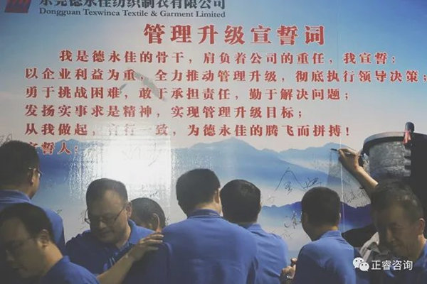 德永佳公司各部門負責人在誓詞前簽名,管理升級正式拉開帷幕!